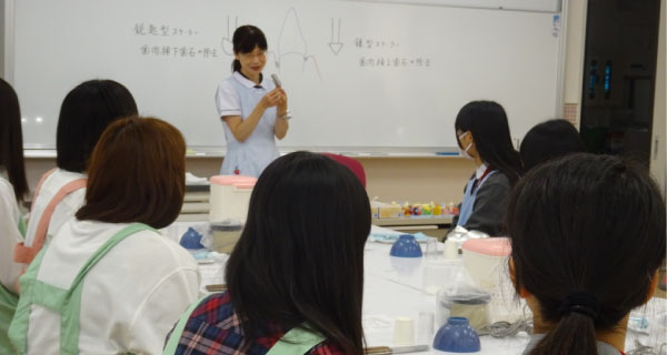 秋のオープンキャンパスでは、歯科医院で使っている器具と材料を使って、キュートな人形作りとスケーリング(歯石取り)が楽しく実技体験できます。